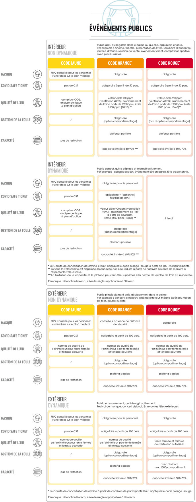 Pour déterminer le code applicable, le Comité de concertation tiendra compte, outre la pression exercée sur les soins de santé, d’une évaluation globale de la situation épidémiologique et accordera une attention particulière à la santé mentale.
